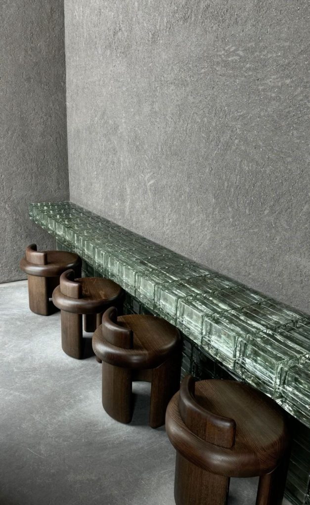 En Madrid, la experiencia se vuelve más etérea. Verde cristal, reflejos plateados y líneas minimalistas crean un ambiente fresco y elegante. Un oasis contemporáneo donde el matcha es protagonista y el diseño, pura calma visual.